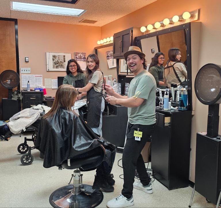 Haircare and Barber services are available, Monday to Friday. The Salon is located on the main floor in Building A across from the auditorium.