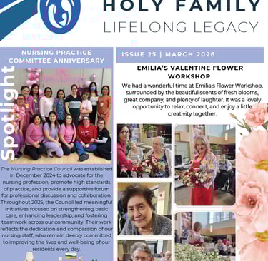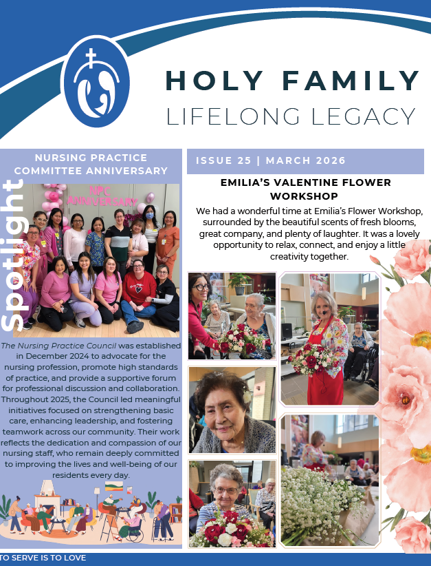 Our monthly digest brings these moments directly to you. Whether it’s a festive celebration, a creative new recreation project, or a quiet moment of reflection in the chapel, our residents are at the center of it all. Read our monthly update to discover the highlights of life at Holy Family Home, meet the wonderful people who live here, and get a first look at upcoming events.
