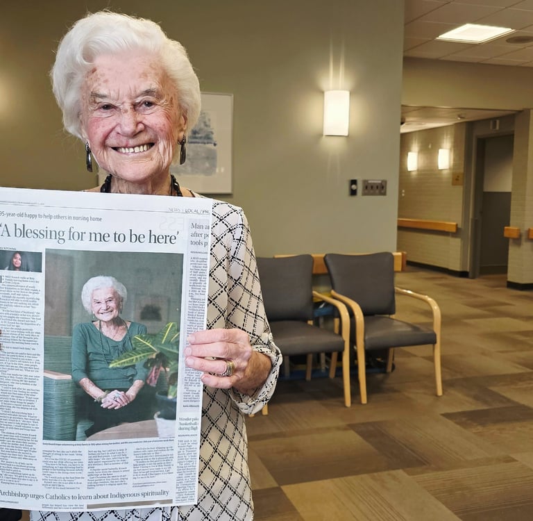 95-year-old happy to help others in nursing home