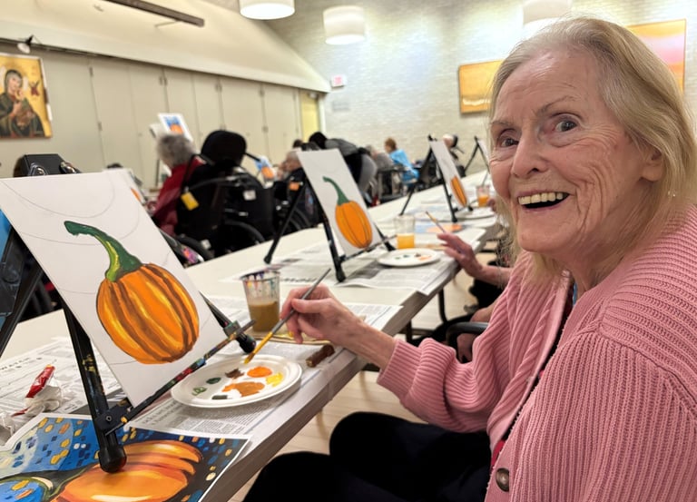 Now she’s back in the North End – surrounded by the faith, community and traditions she loves. After a short adjustment, she couldn’t be happier. With Divine Liturgy throughout the week, delicious meals, kind staff, and a recreation team that fills her days with music, painting, and laughter, Mom truly feels at home again.